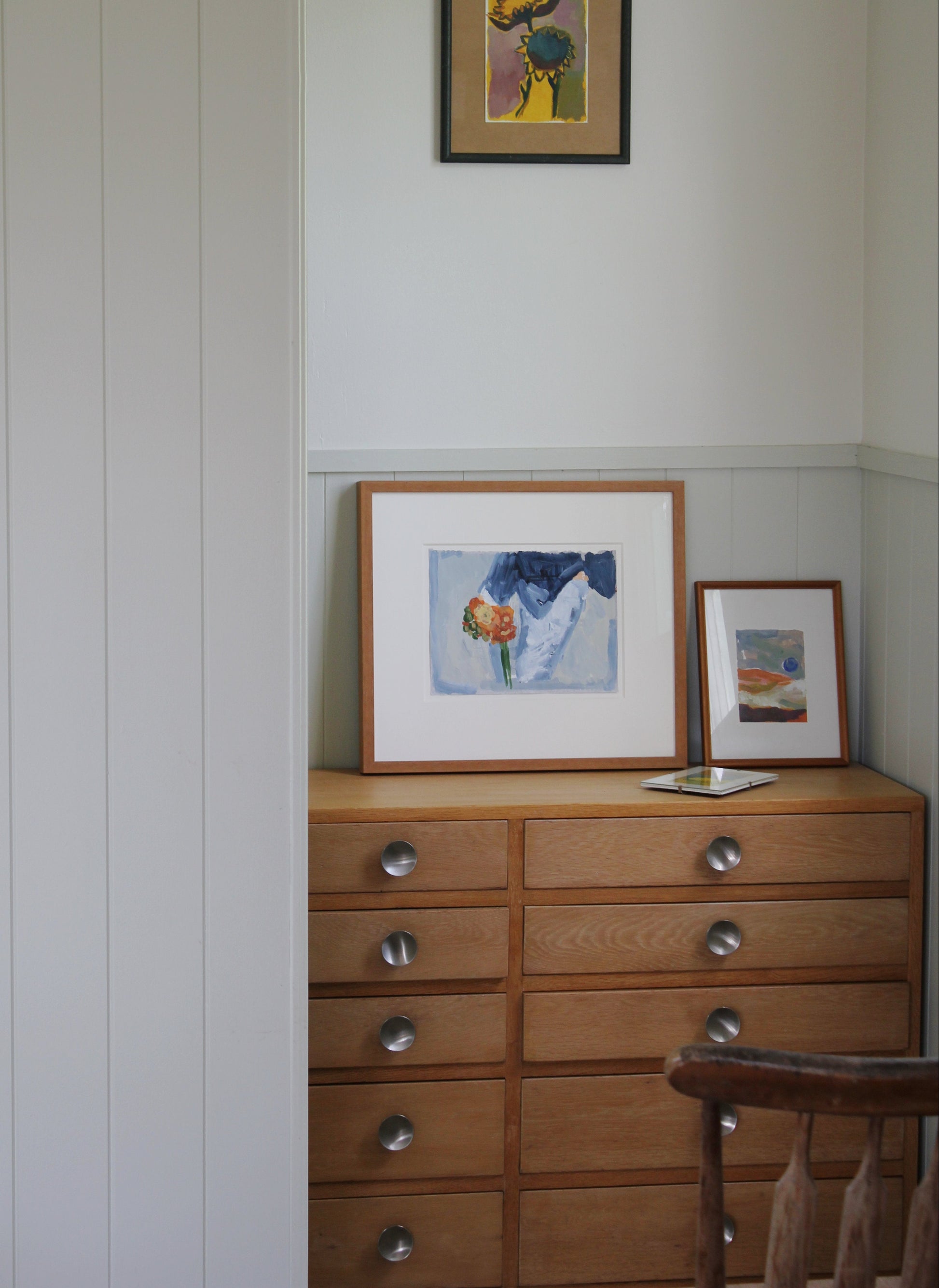 A layered, expressive work combining gouache and house paint on a found magazine page — part of Under the Moon & Sun(flowers), the first release from Ophelia Jones’ ongoing collaboration with AWAYDAY.