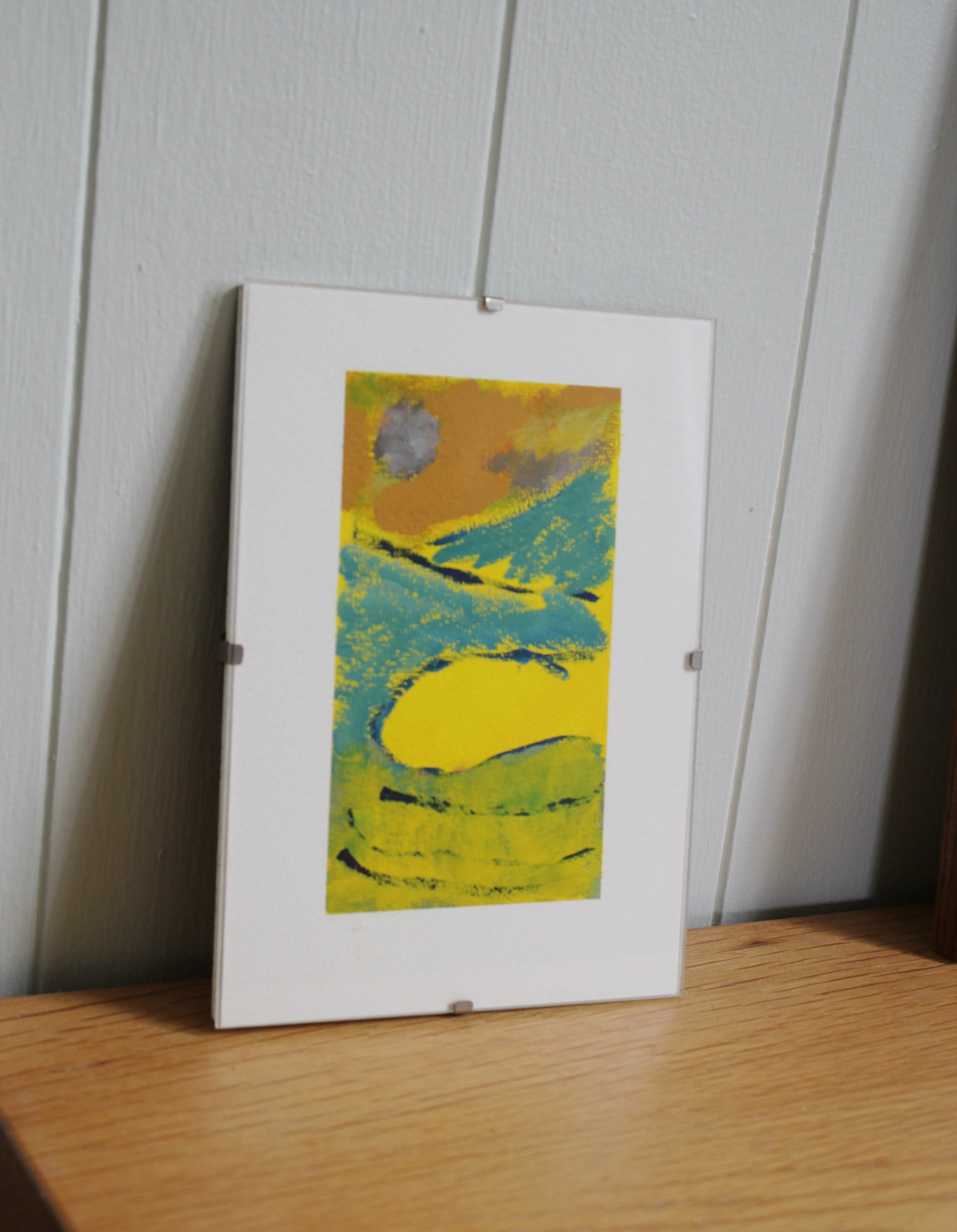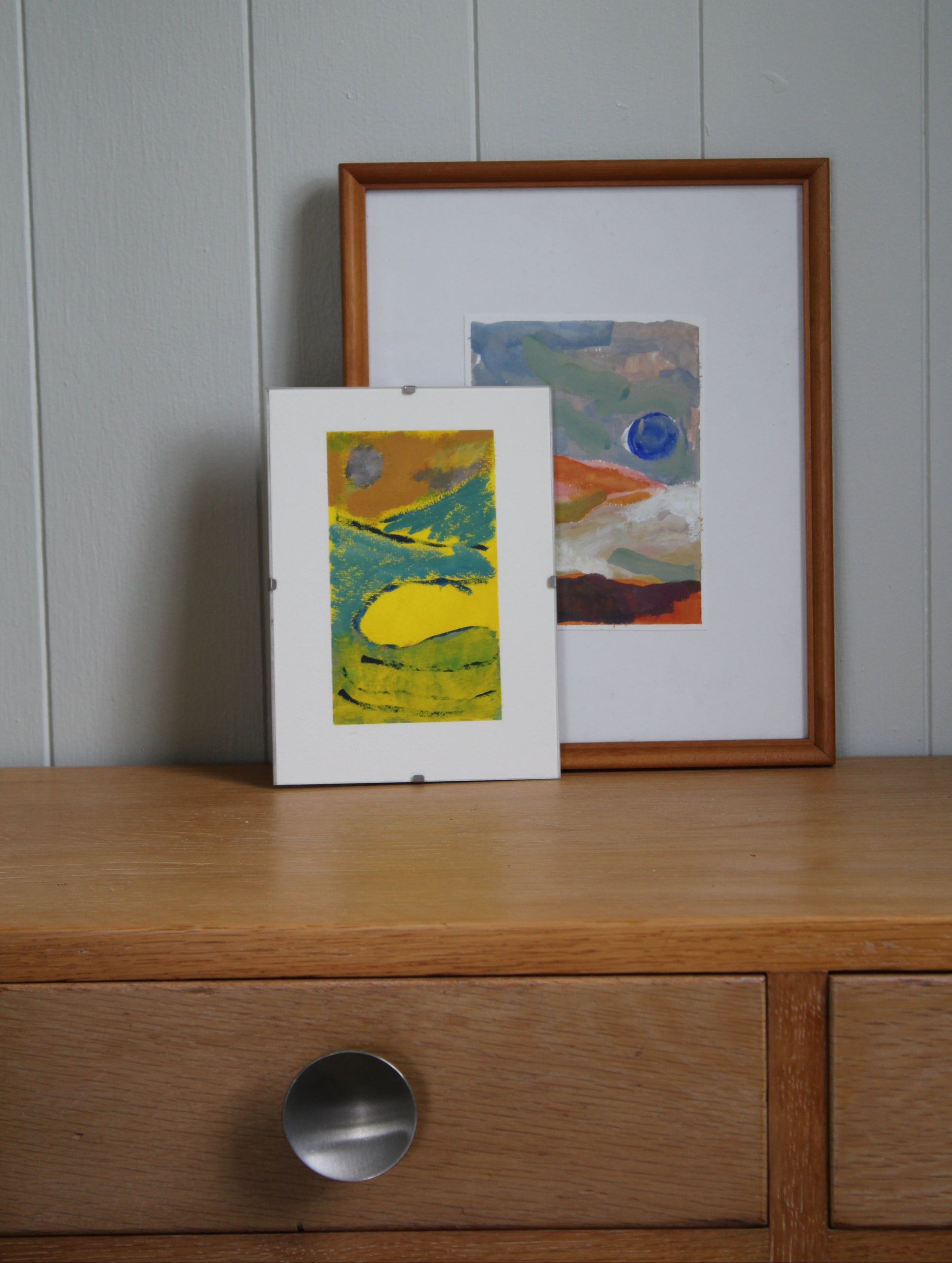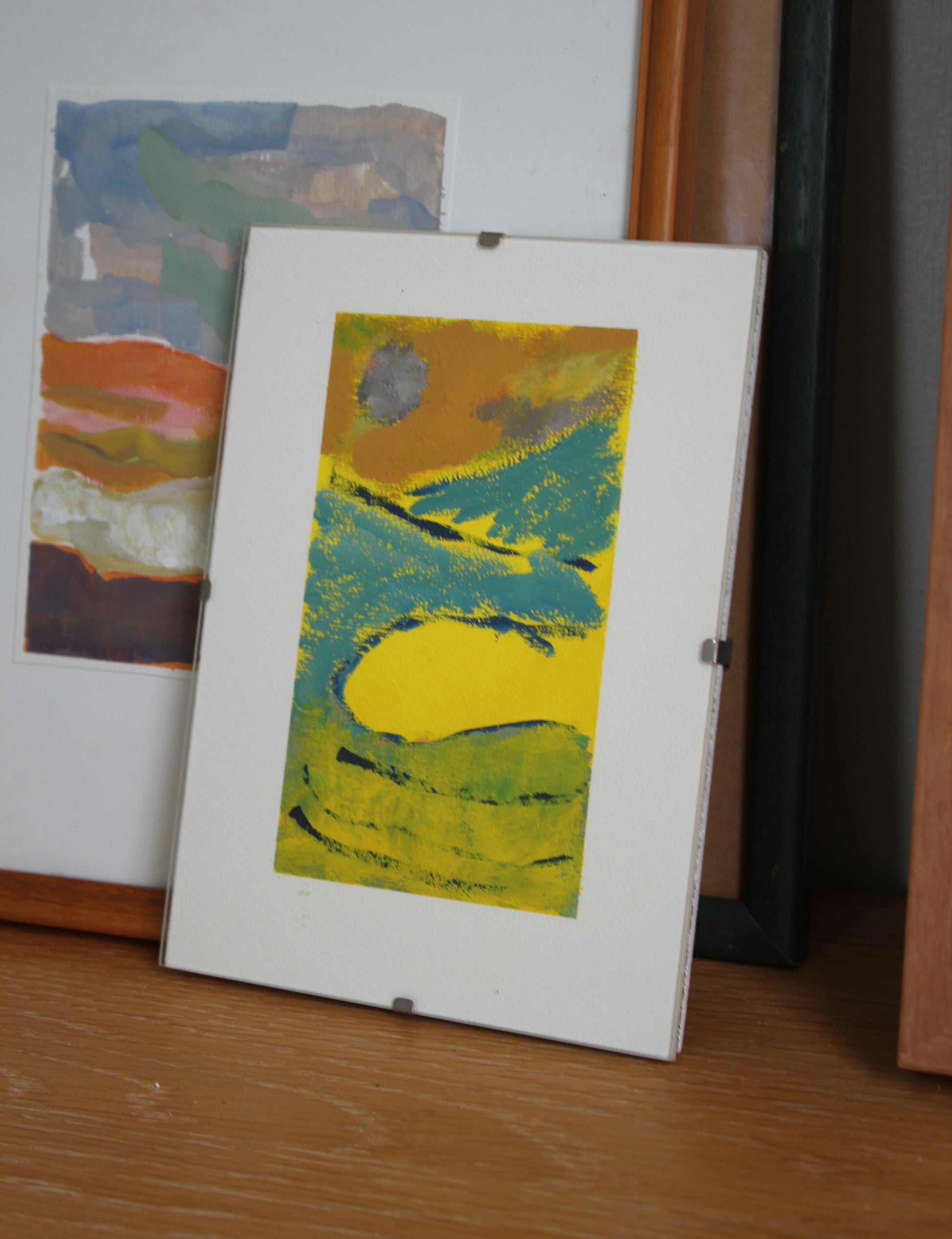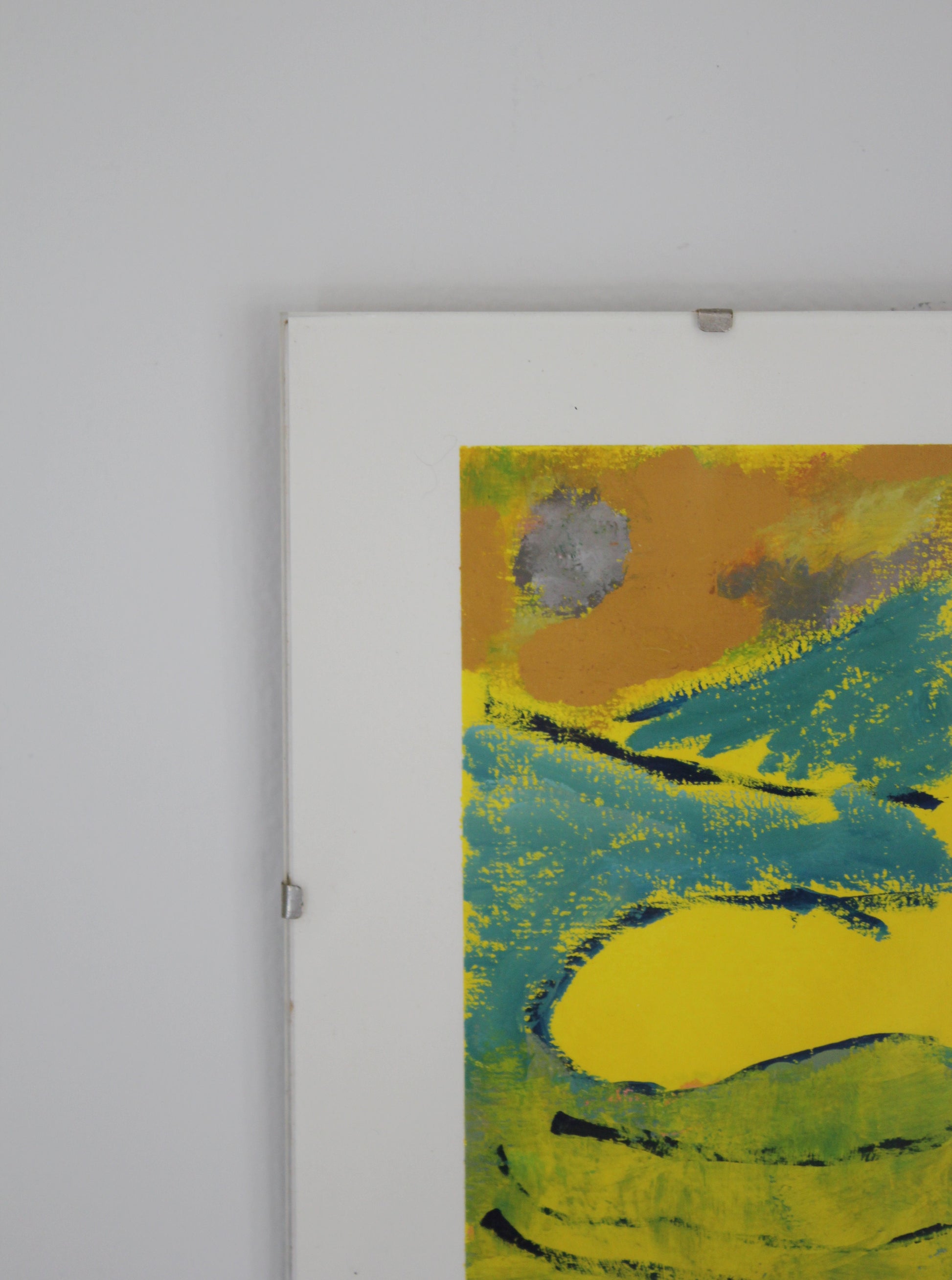 A contemplative study from artist Ophelia Jones, drawn from her personal archive. Painted in gouache on paper and presented in a vintage clip frame made in Germany. Part of Under the Moon & Sun(flowers) — the first release from Ophelia’s ongoing collaboration with AWAYDAY.