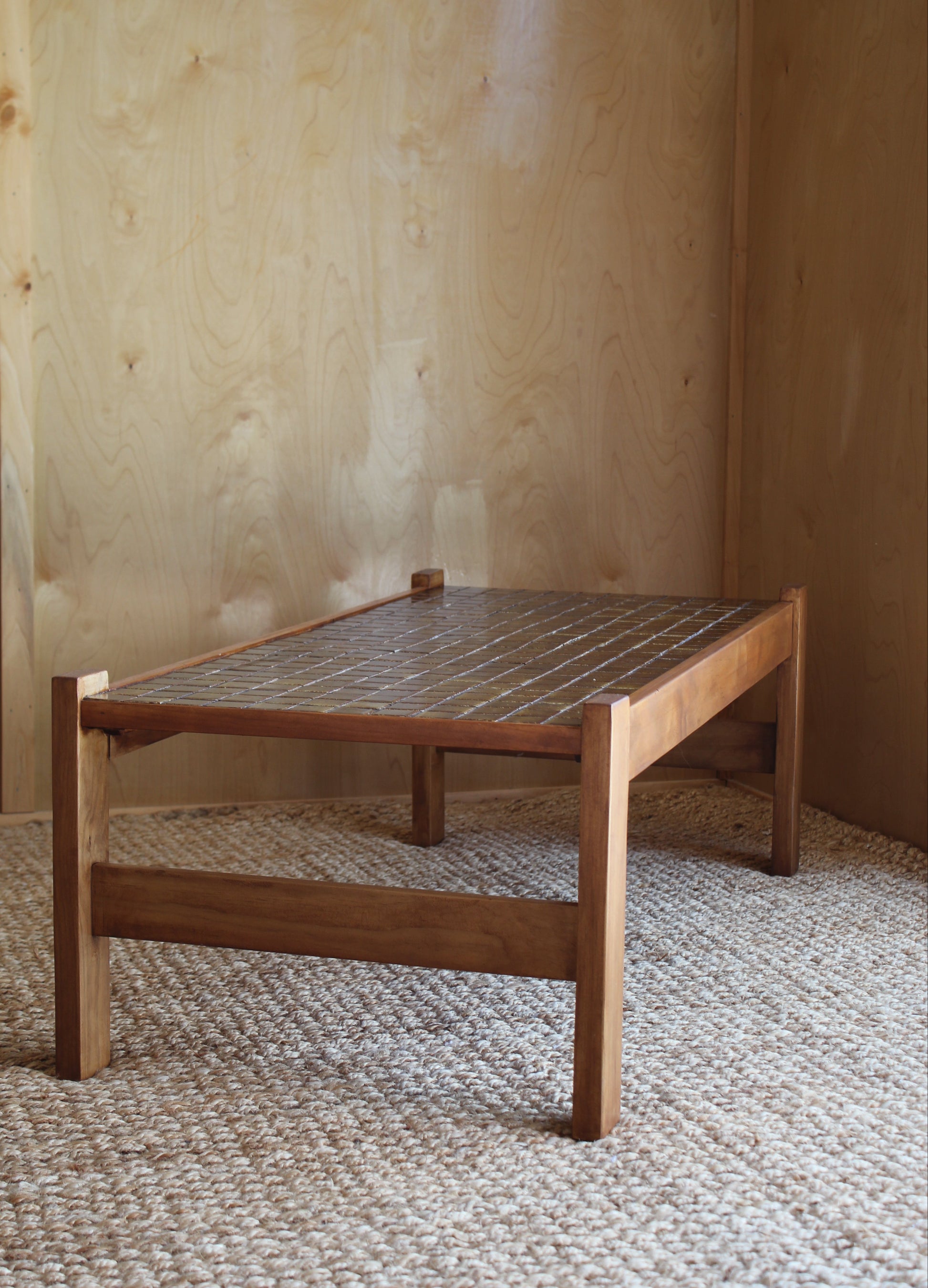 A minimalist midcentury coffee table with a solid timber frame and inset tiled top. Simple, understated and quietly functional, with warm timber tones and a clean, considered silhouette.