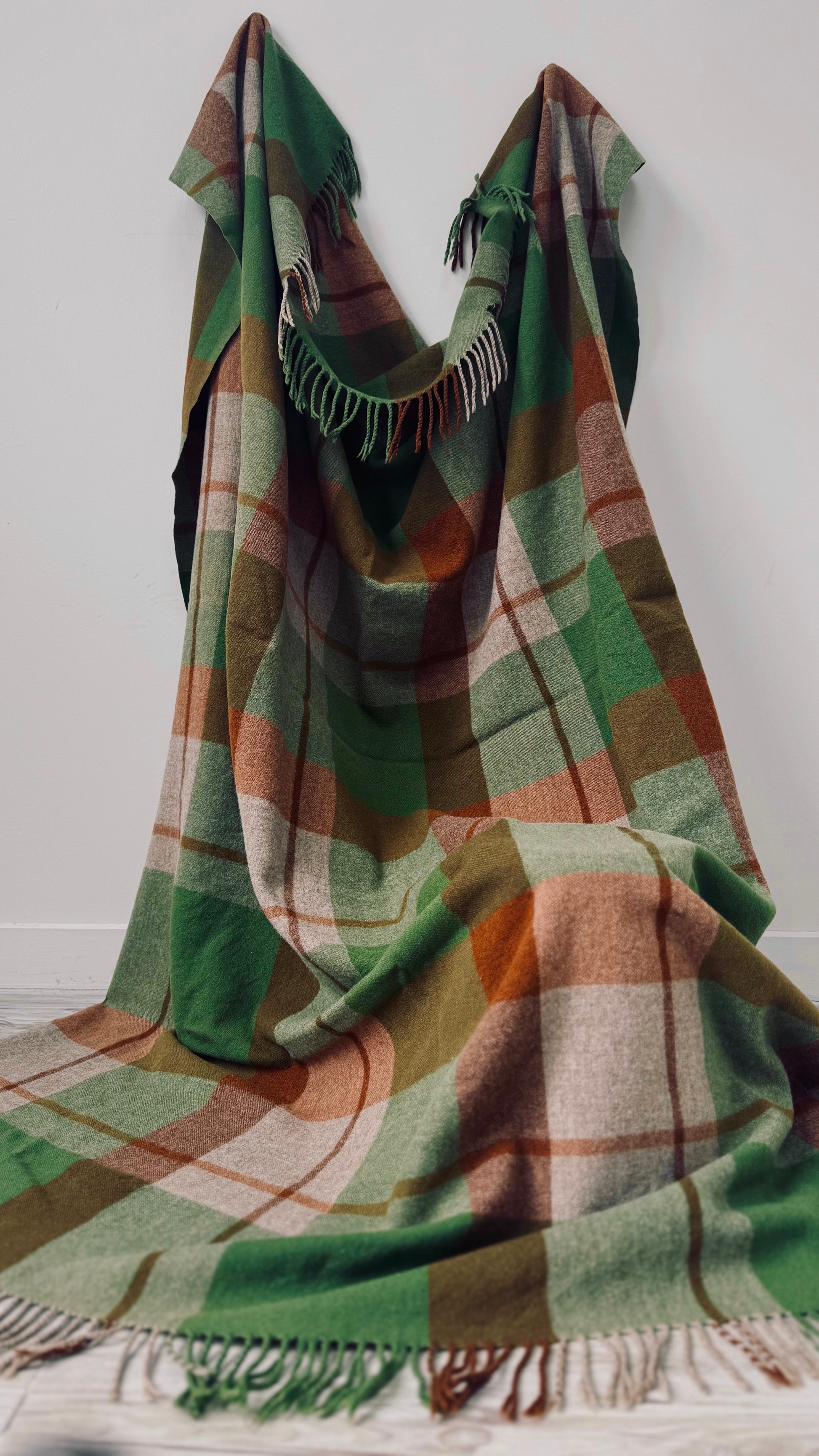 A classic New Zealand-made Kaiapoi wool blanket in a rich green tartan check. A cosy, timeless piece from one of NZ’s most iconic mills—perfect for the bed, sofa, or bach.